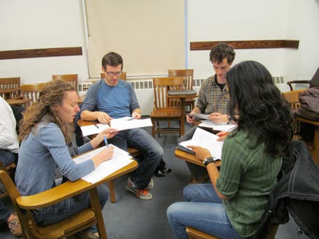 For this exercise, first give brief explanation of ethos, pathos, and logos. Then the class should read a short essay or article to analyze. I’m including the handout I give to groups. After all groups are done, we discuss this as a class.