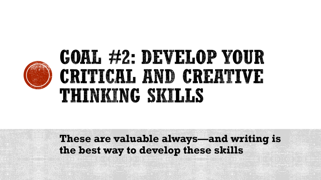 “While some may argue that college students get enough writing practice in their other classes, a writing class should be required for all students because it will help them develop an efficient writing process, they will learn the value of revision, and let’s face it, students have loads of fun in these classes.”