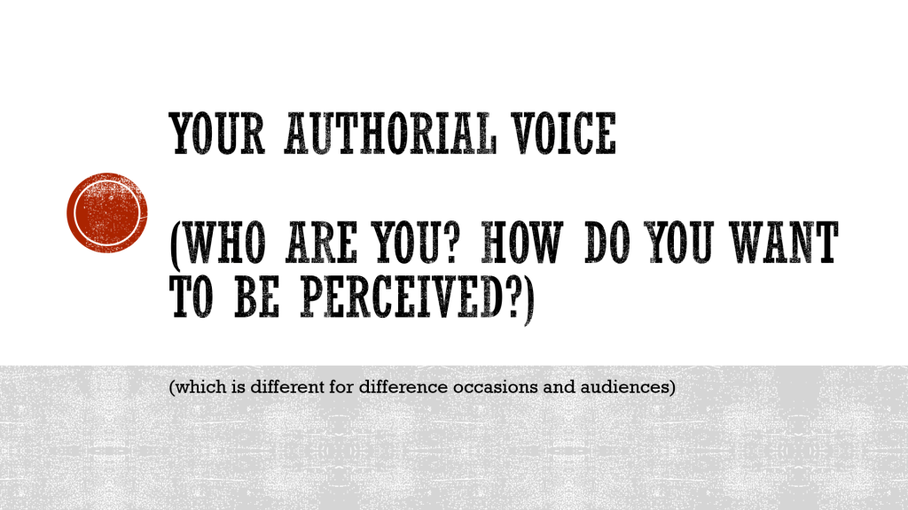 Your authorial voice: You, the subject of the photo, who wants to tell the story behind the experience captured in the photo